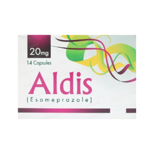 Aldis 20mg capsules contain Esomeprazole, a proton pump inhibitor (PPI) used to treat conditions caused by excessive stomach acid, such as Gastroesophageal Reflux Disease (GERD), peptic ulcers, and Zollinger-Ellison syndrome. It reduces acid production and helps heal acid-related damage to the esophagus.