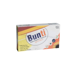 Bunti tablets are a nutritional supplement, often containing vitamins (A, C, D, E, B-complex), minerals (Calcium, Iron, Zinc), and Ginseng, designed to treat general weakness, nutritional deficiencies, and support health during pregnancy. They are used to improve metabolism, strengthen the immune system, and boost overall energy