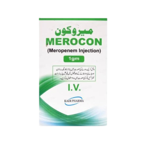 Merocon (Meropenem) injection is a powerful broad-spectrum antibiotic used for serious bacterial infections like pneumonia, meningitis, complicated skin infections, abdominal infections (appendicitis, peritonitis), urinary tract infections, and sepsis (blood infections) in adults and children, working by killing susceptible bacteria. It's given intravenously for severe illnesses and will not treat viral infections like colds or flu.