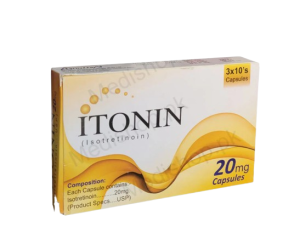 Itonin (Isotretinoin) Capsule is a form of vitamin A and It is usually used to treat severe forms of acne, such as nodular conglobate acne, cystic acne, cutaneous T-cell lymphoma, nodular rosacea, and high-risk neuroblastoma.